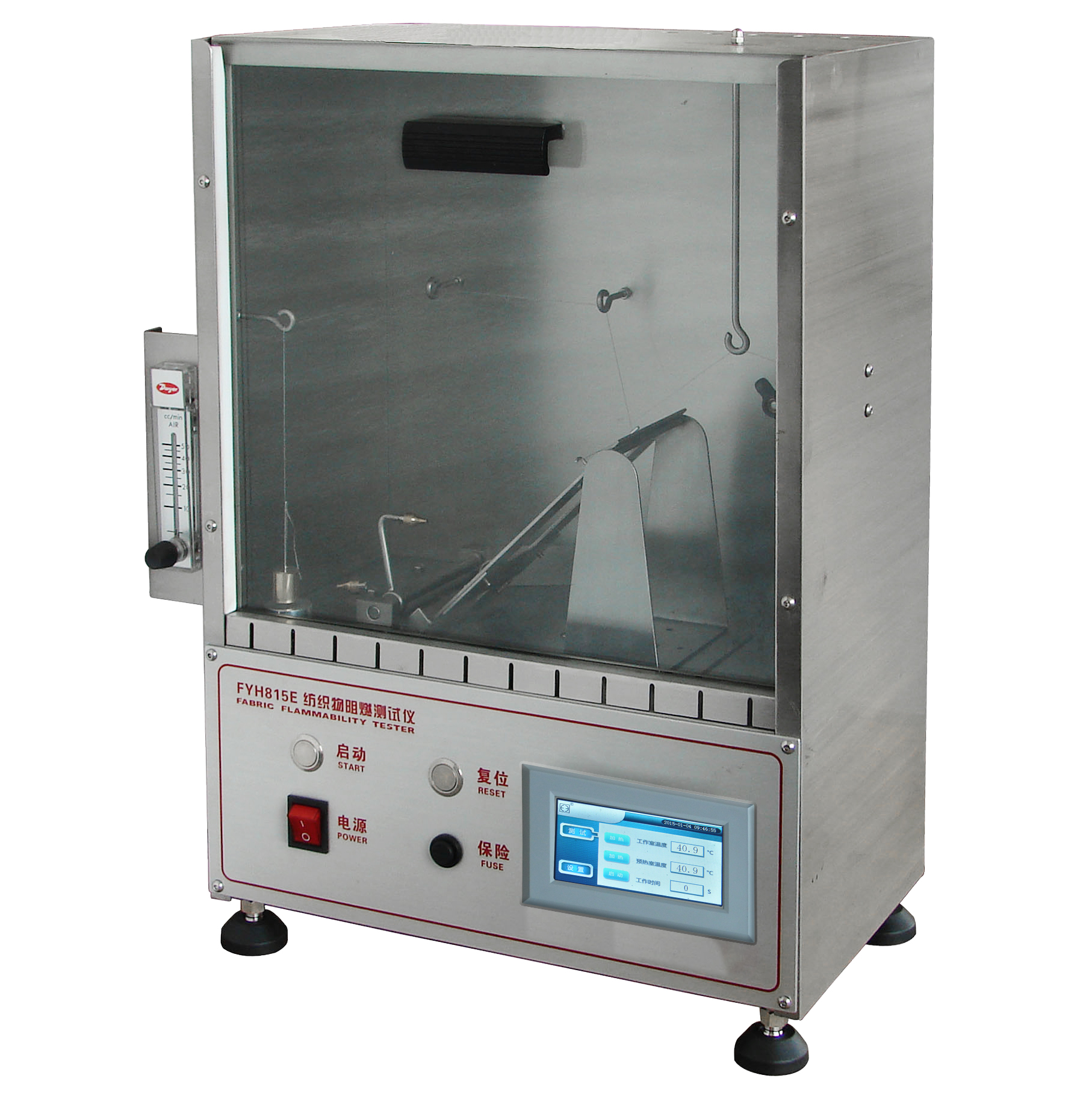 251 FYH815E型45度燃燒測試儀 16CFR 1610 美國服裝面料阻燃標(biāo)準(zhǔn); ASTM D1230服裝紡織阻燃測試; NFPA 720 CATB 117 CAN/CGSB-4.2NO.27.5